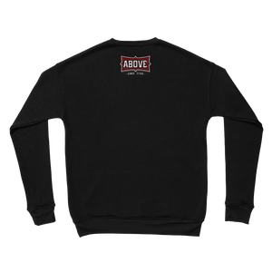 The Logos Shield V1 - Black Crewneck Sweatshirt by Above®. Quality, Comfortable, and Soft 7 oz. 52% Cotton 48% Polyester Blend, 32/s thread, Black, Printed with from Above in the U.S.A. Available in Small to 2XL.